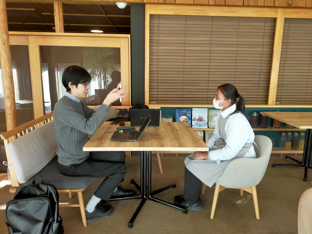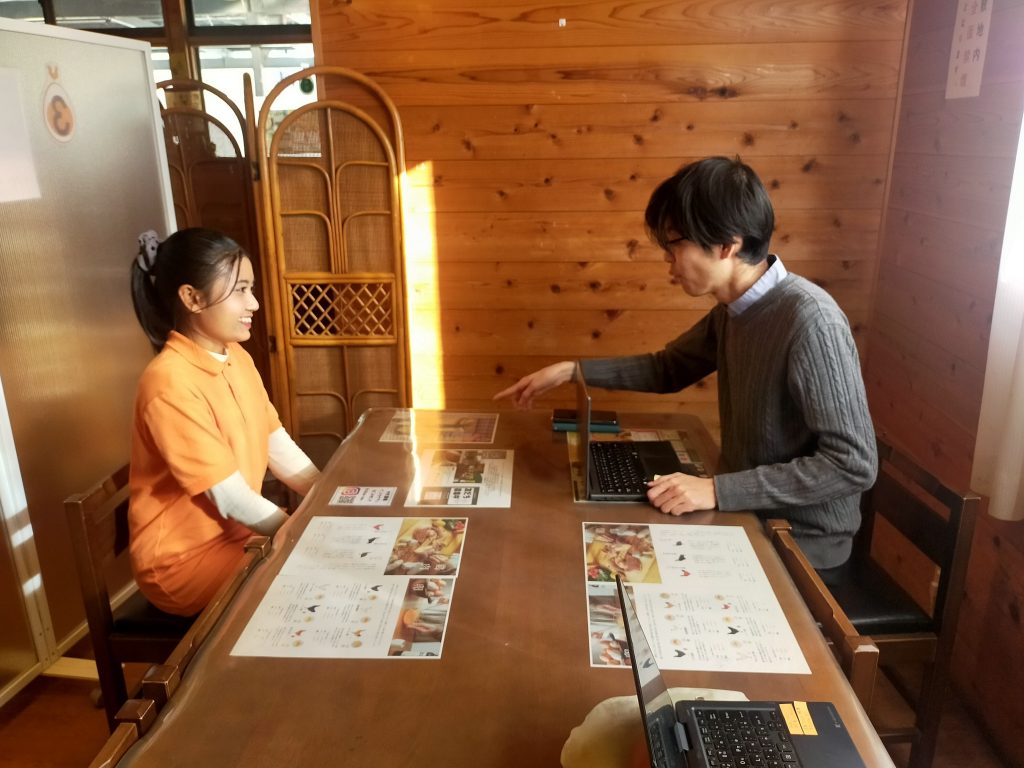 山梨県のカフェと食堂で働いています。まだ入国して1か月くらいですが、日本語がとても上手で接客もしているそうです。職場の先輩たちに可愛がってもらっているようで「楽しいです」と話してくれました。